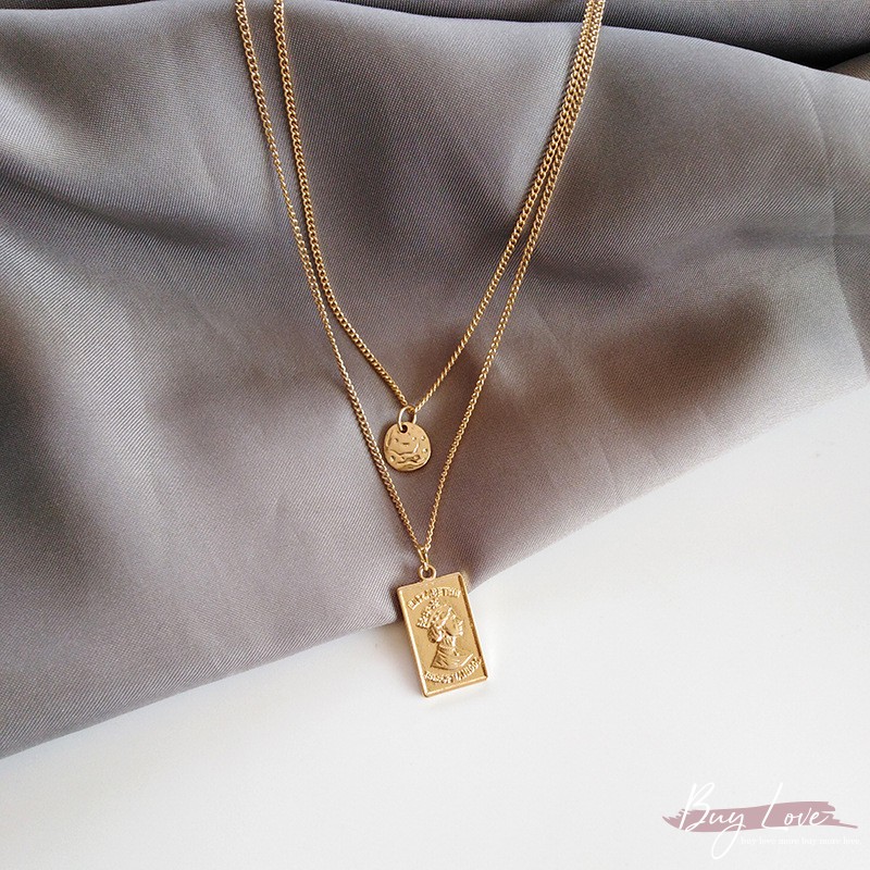 【買到戀愛】現貨出清 復古金人頭小圓幣雙鍊 疊鍊 吊飾【I239】