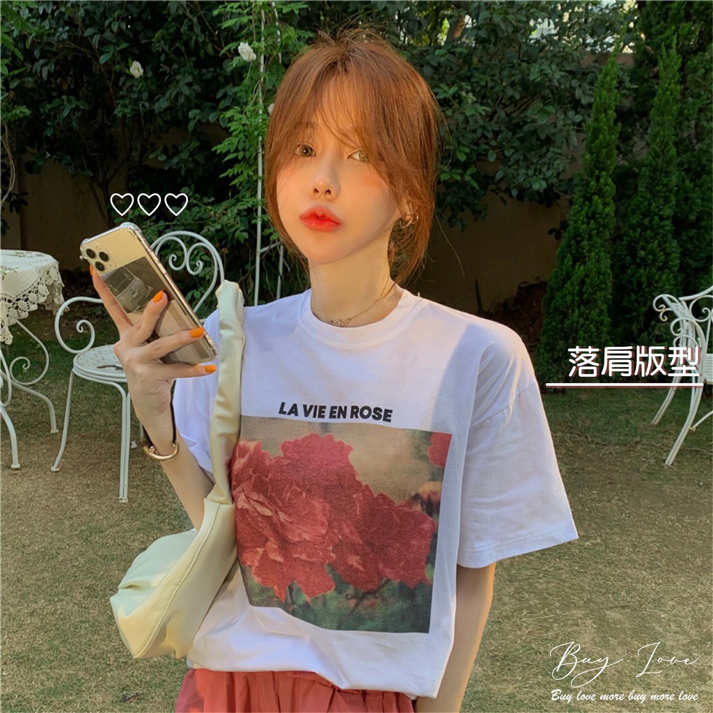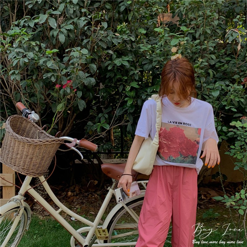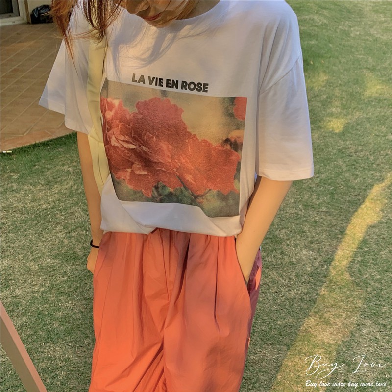 【買到戀愛】現貨出清 復古玫瑰園印花短T+玫粉高腰落地褲【FT9060】