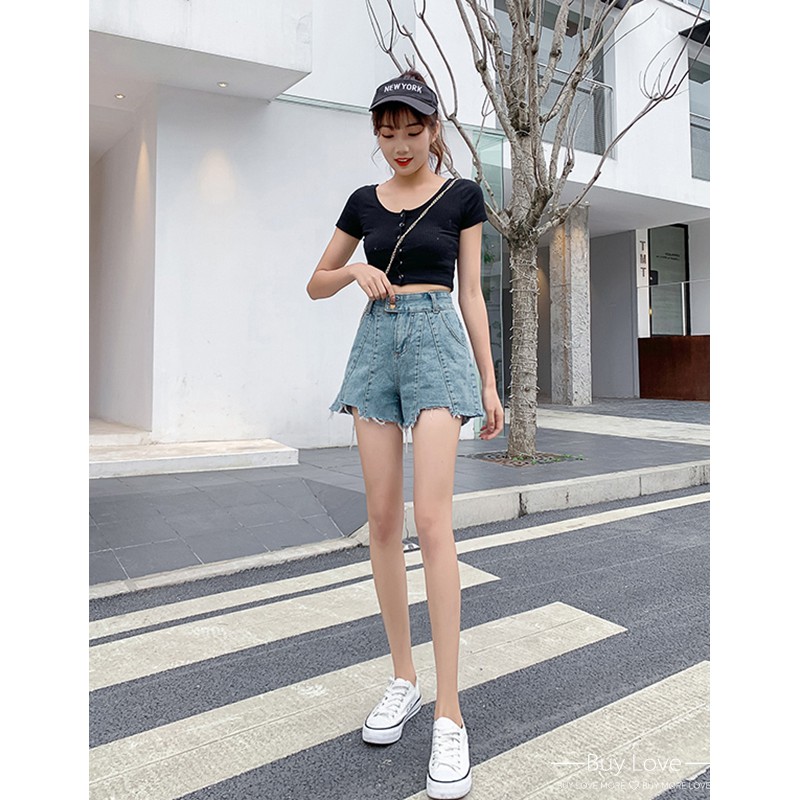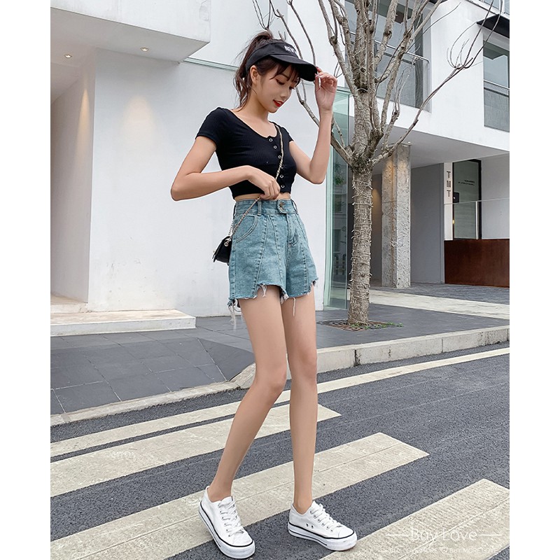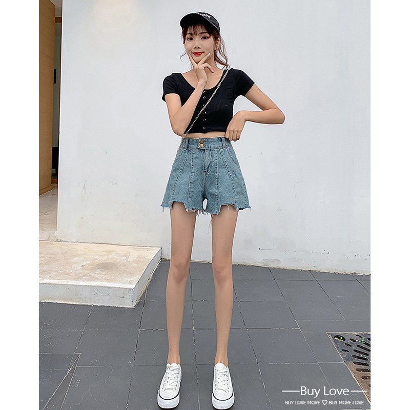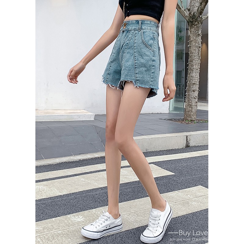 【買到戀愛】隔日到貨 限量 多碼雙釦下襬不規則破壞鬚邊牛仔短褲 熱褲【HS606】