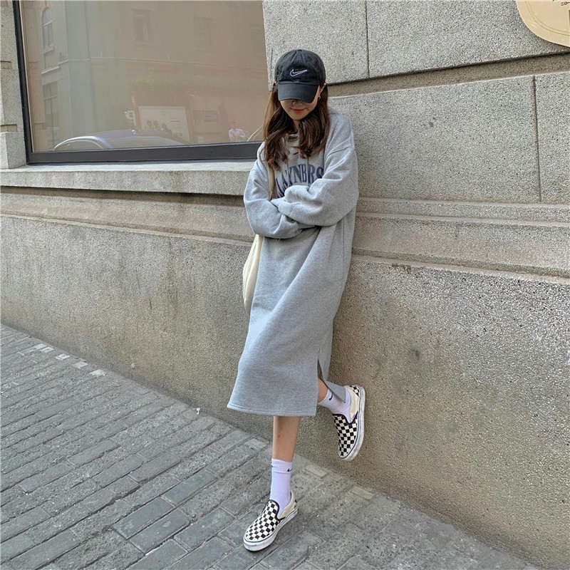 【買到戀愛】隔日到貨 女裝 實拍雙層帽刷毛加絨加厚過膝長款連帽衛衣裙 上衣 大學T【C1022】