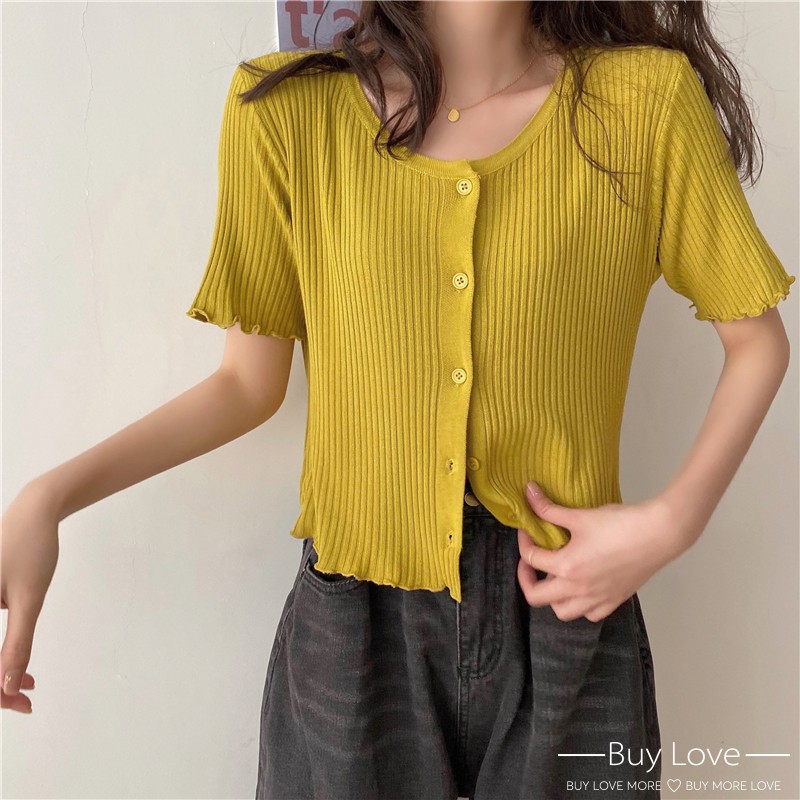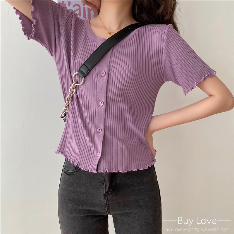 【買到戀愛】現貨出清 紫色百搭U領木耳邊坑條螺紋短袖 薄針織【FA120】