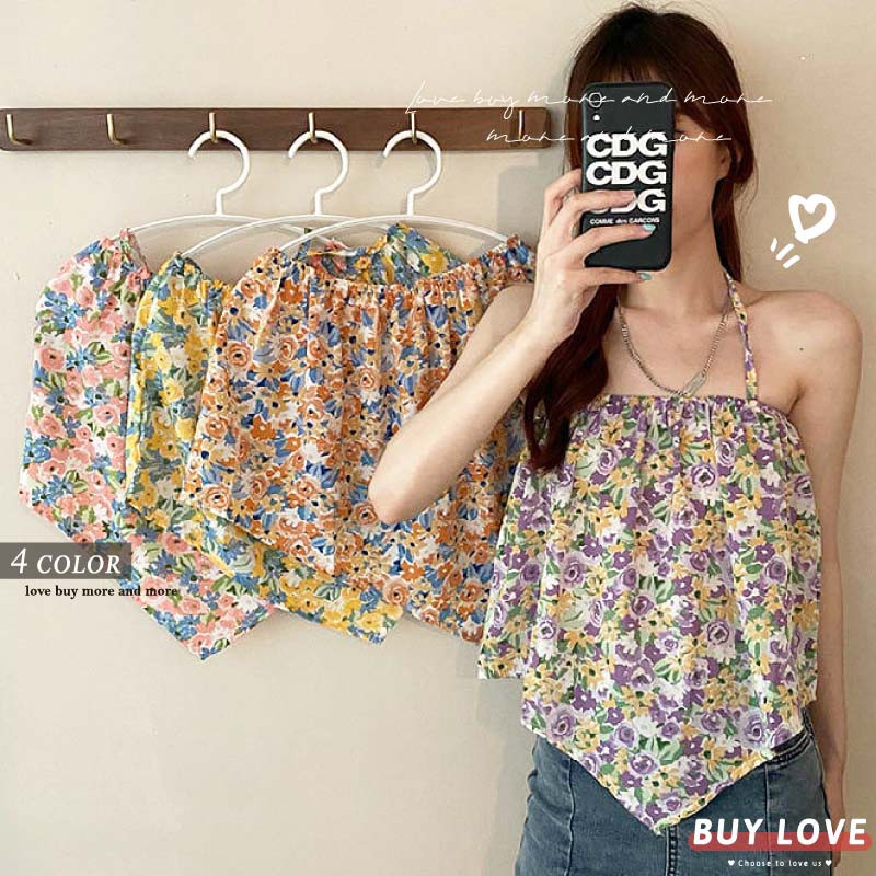 【買到戀愛】限量 甜美款碎花繞頸綁帶露肩背心 小可愛 無袖上衣 【M1354】