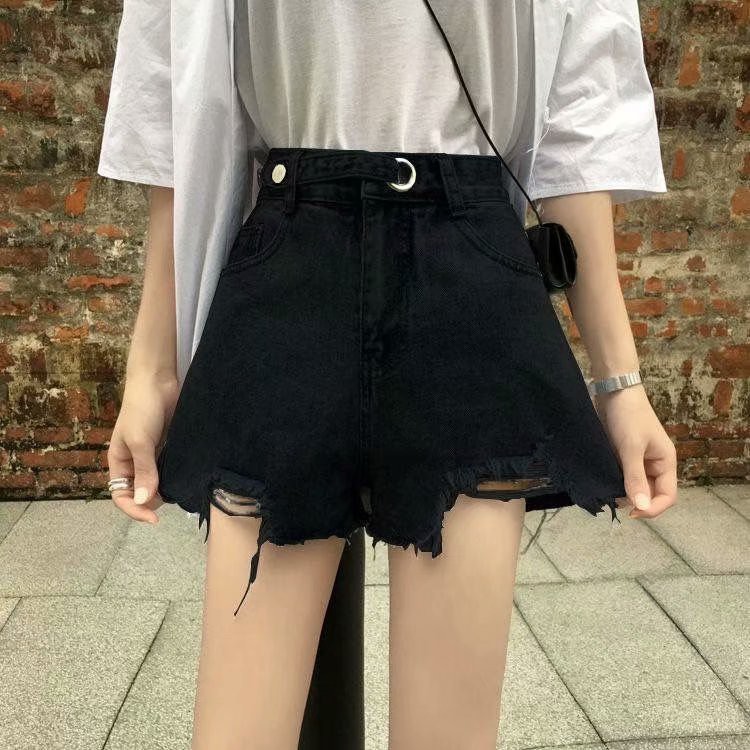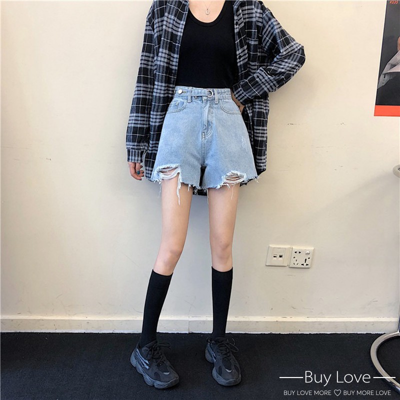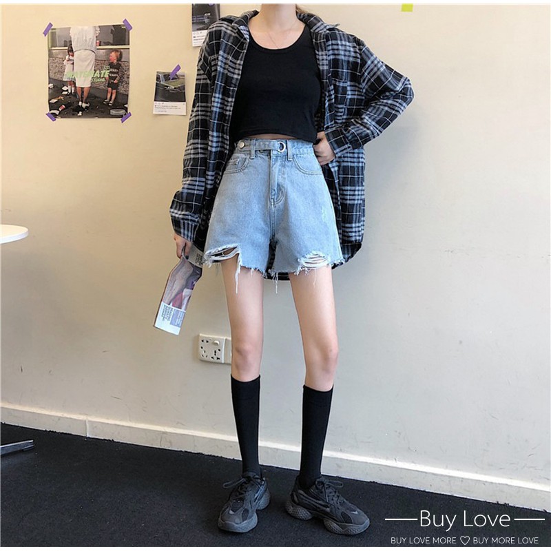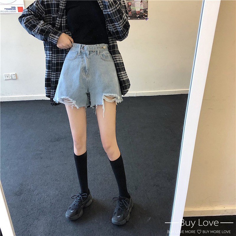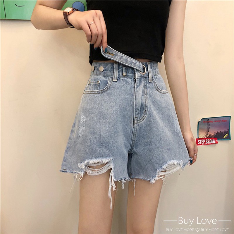 【買到戀愛】隔日到貨 限量 多碼腰間可調節刷破兩色牛仔短褲 牛仔褲【HS857】