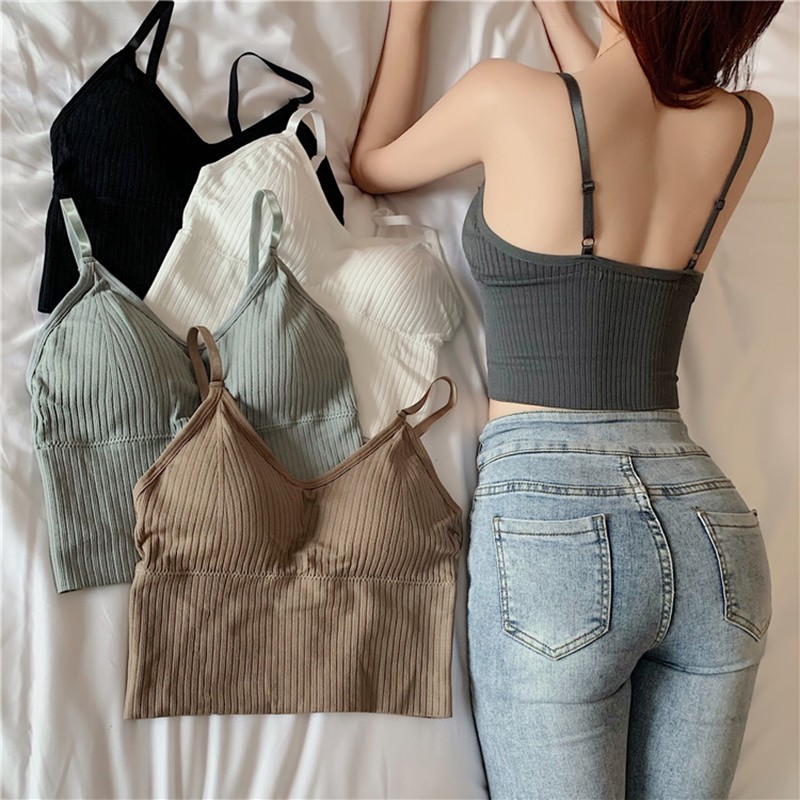 【買到戀愛】售完不補多色肩帶可調挖背坑條短版背心 小可愛【M101】