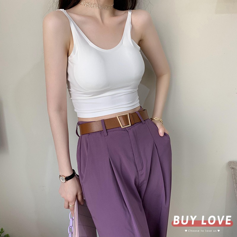 【買到戀愛】限量 現貨 冰絲帶胸墊可調肩帶大挖肩細肩背心【M606】