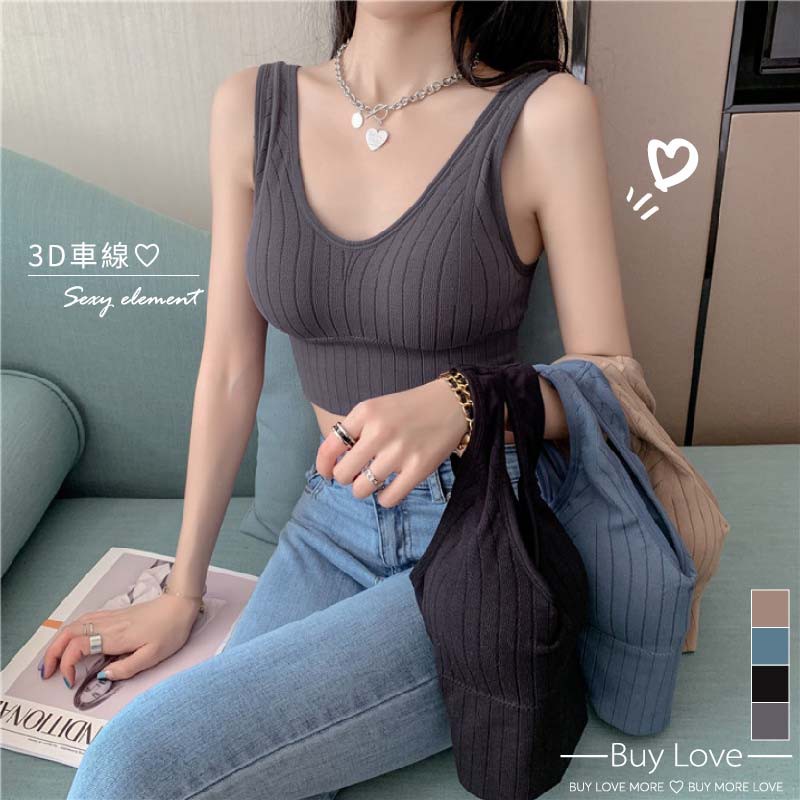 【買到戀愛】現貨出清 寬肩帶短版3D坑條挖背背心 小可愛【M501】
