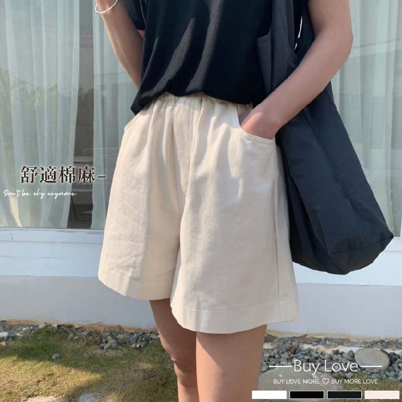 【買到戀愛】現貨出清 歐逆的高腰棉麻短褲 A字褲【HS028】