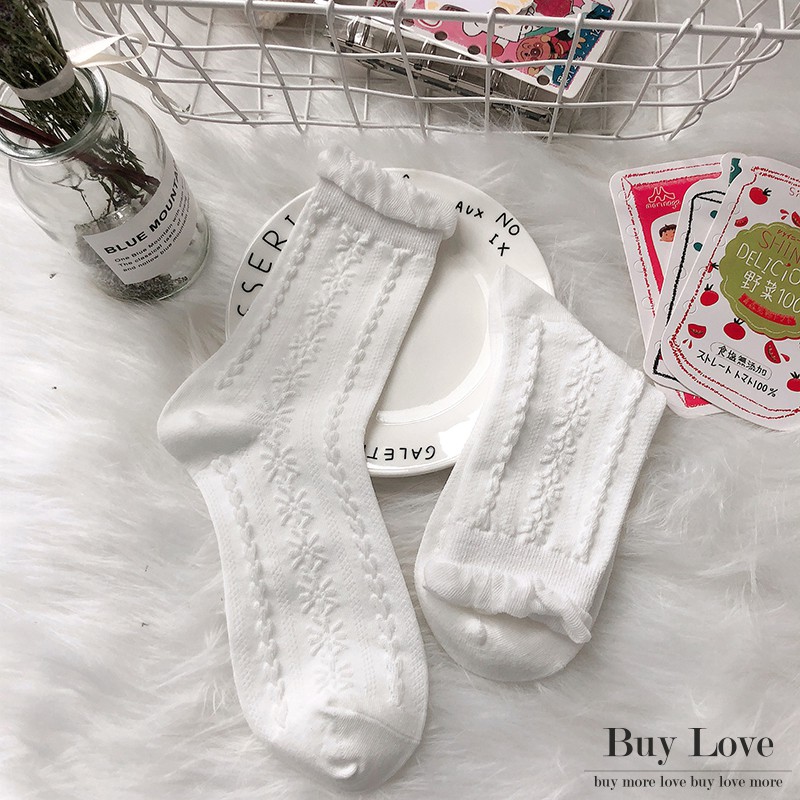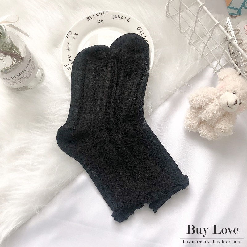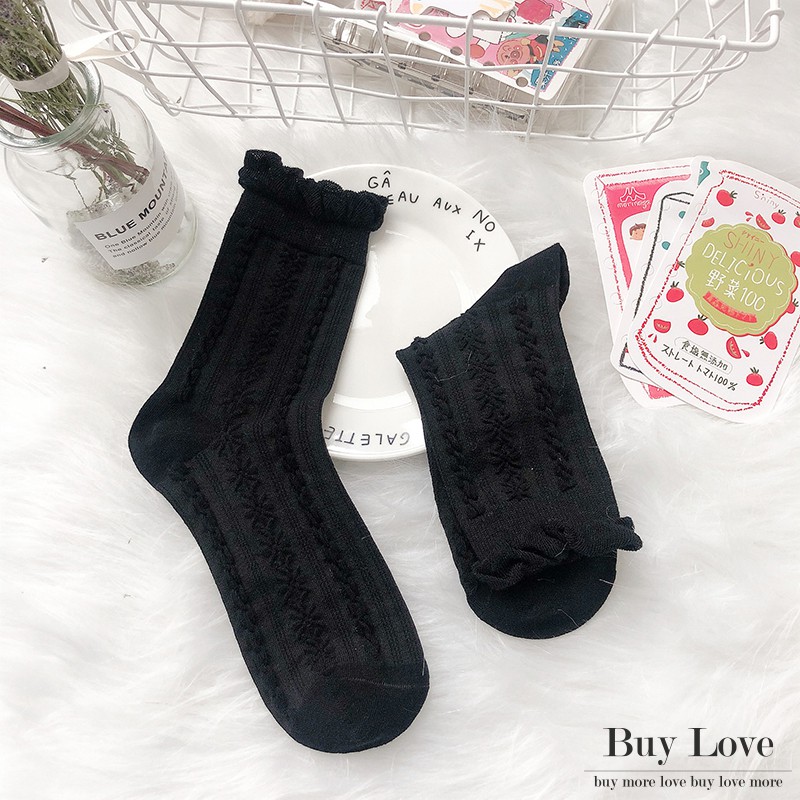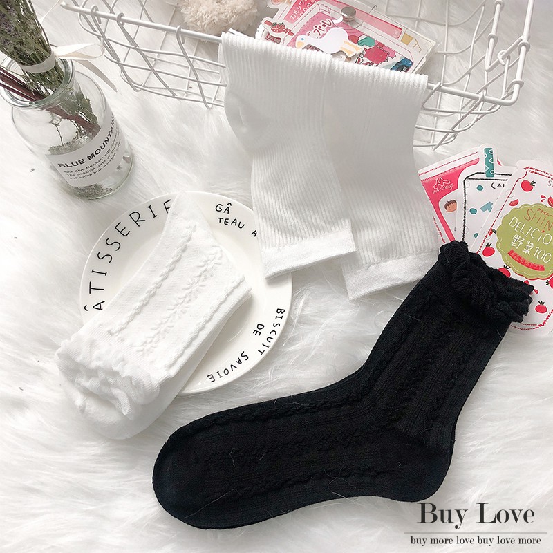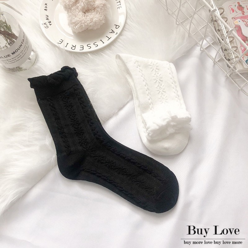 【買到戀愛】現貨出清溫柔黑白配泡泡中筒襪 長襪 【W40】