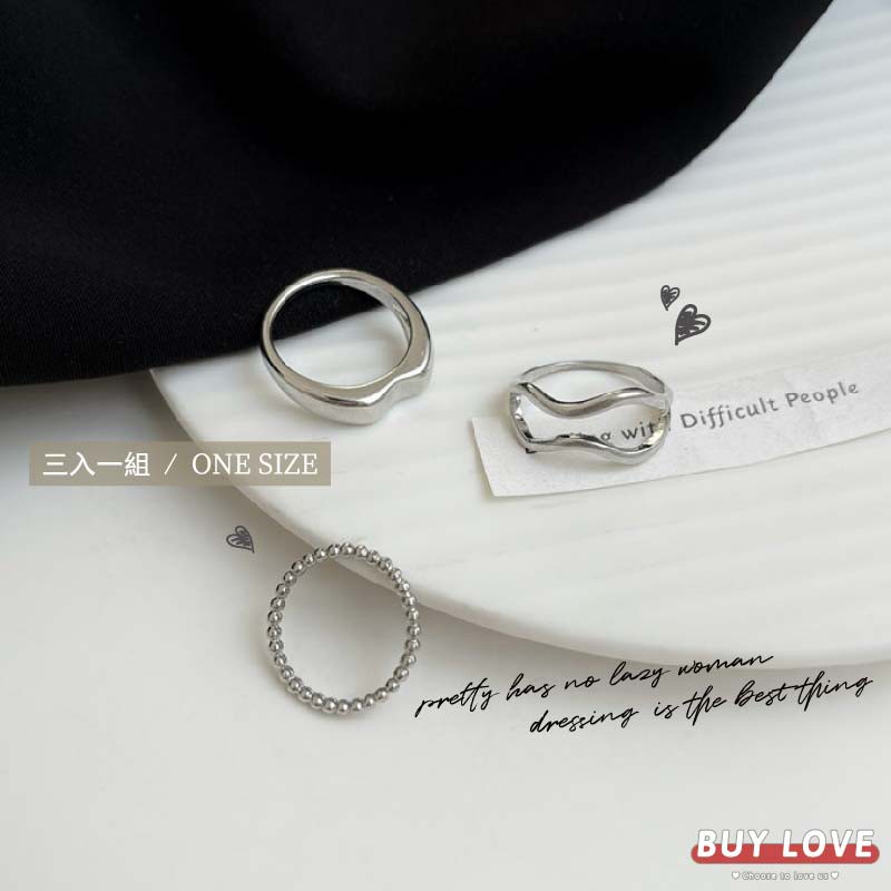 【買到戀愛】隔日到貨 女裝 熱賣 韓系氣質三入一組不規則造型戒指 飾品 配件 珠珠 【I1175】