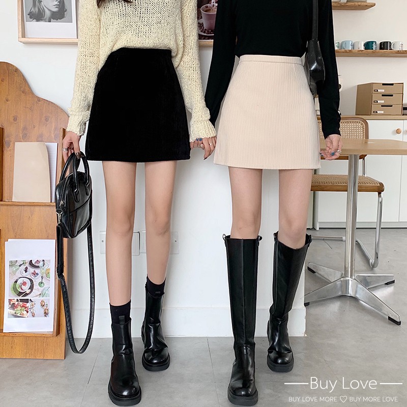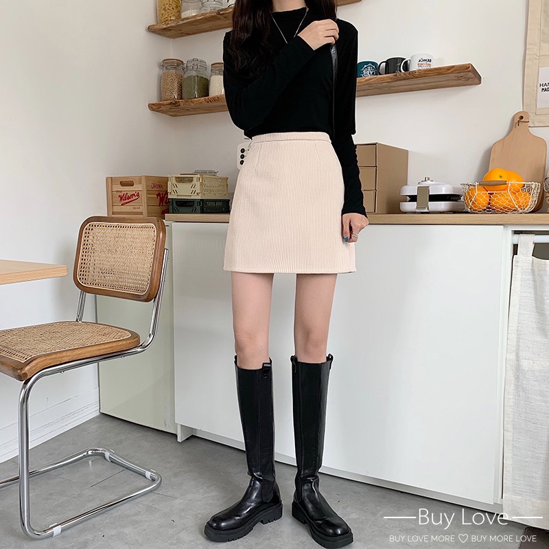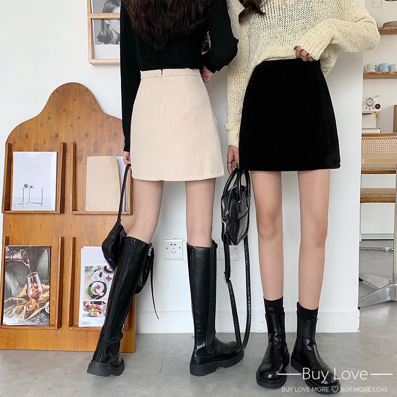 【買到戀愛】隔日到貨 女裝 韓版燈芯絨短裙 超瘦仙女款顯瘦顯腿長 短裙 A字裙 半身裙【C1011】
