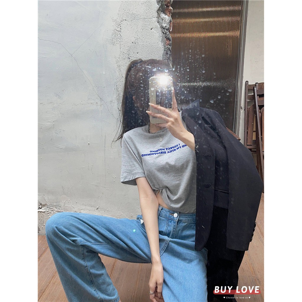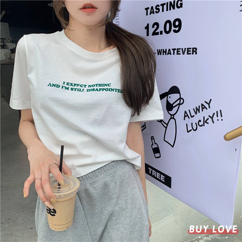 【買到戀愛】隔日到貨 百搭字母短版短袖棉T T恤 顯瘦上衣 女上衣 短袖t恤 短T 素T 女裝 寬鬆上衣【FA8666】