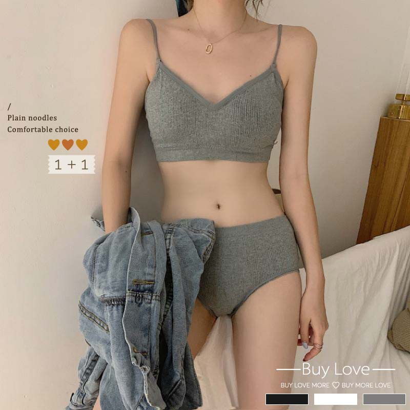 【買到戀愛】售完不補一套組 素面高質螺紋小可愛內褲 內衣 居家套裝 居家內衣【BE111】