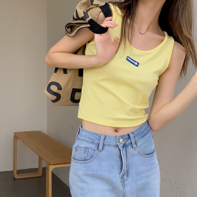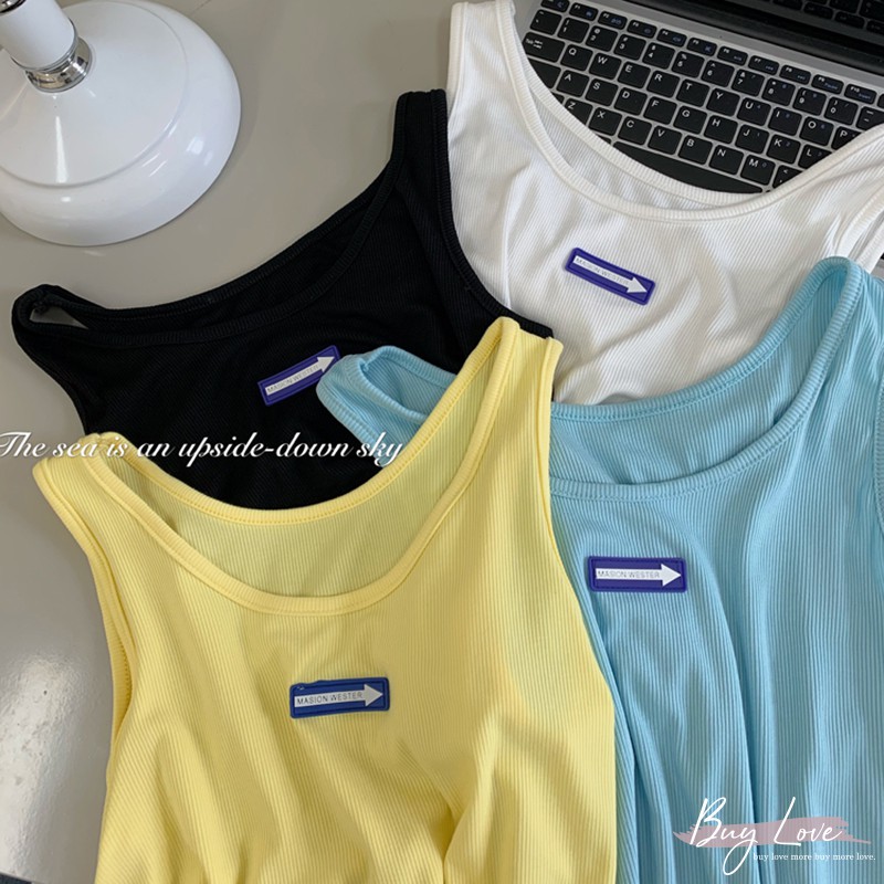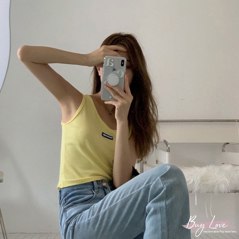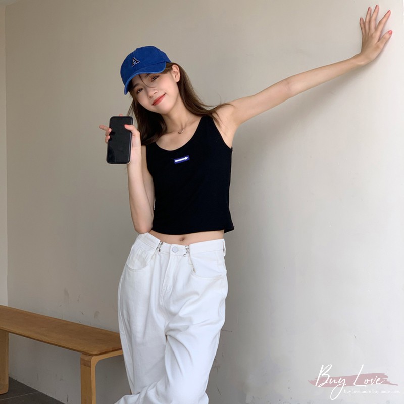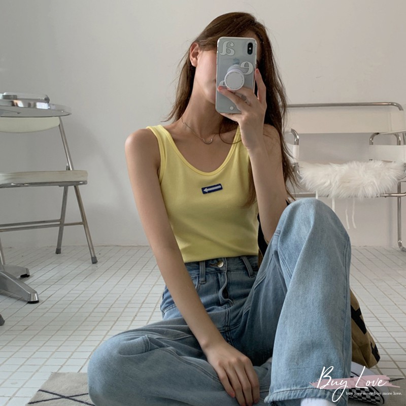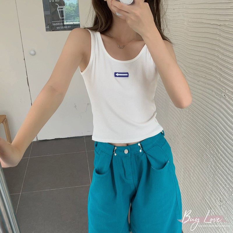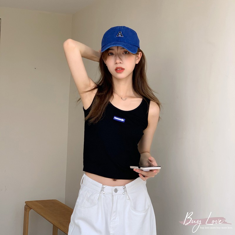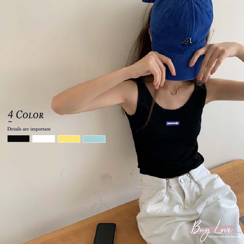【買到戀愛】現貨出清 可愛立體箭頭logo寬肩無袖背心 無袖上衣 小可愛【M2023】