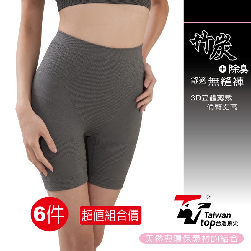 束腹提臀平口褲6件組 無縫竹炭內褲 塑腰提臀內褲(女高腰五分褲)