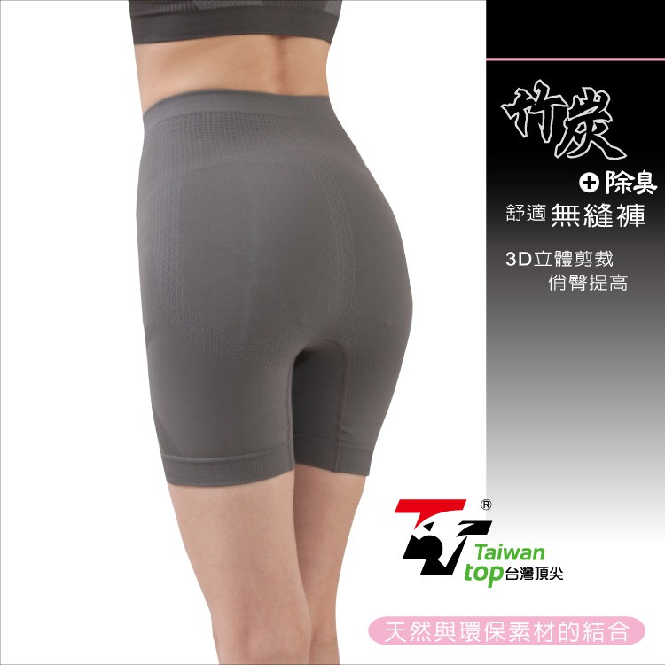 台灣頂尖-束腹提臀褲 無縫竹炭平口內褲 塑腰提臀內褲(女高腰五分褲)(A-291QF)
