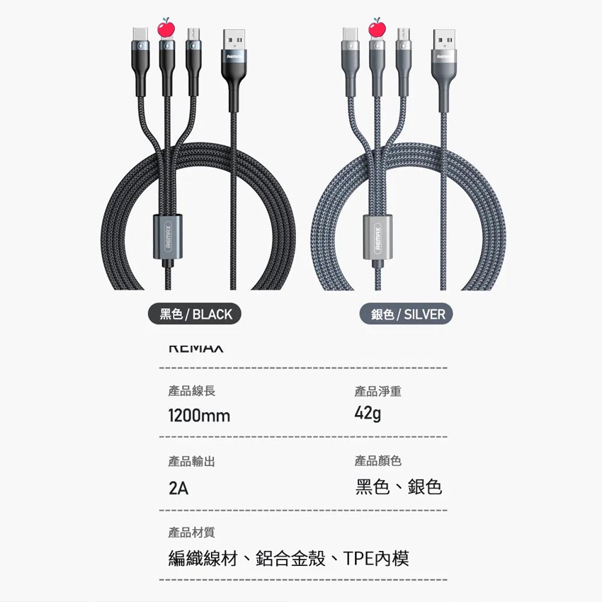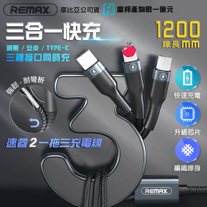 【快速發貨】REMAX 速睿2 一拖三充電線 1200線長 三合一 Micro Apple TypeC 正版台灣公司貨