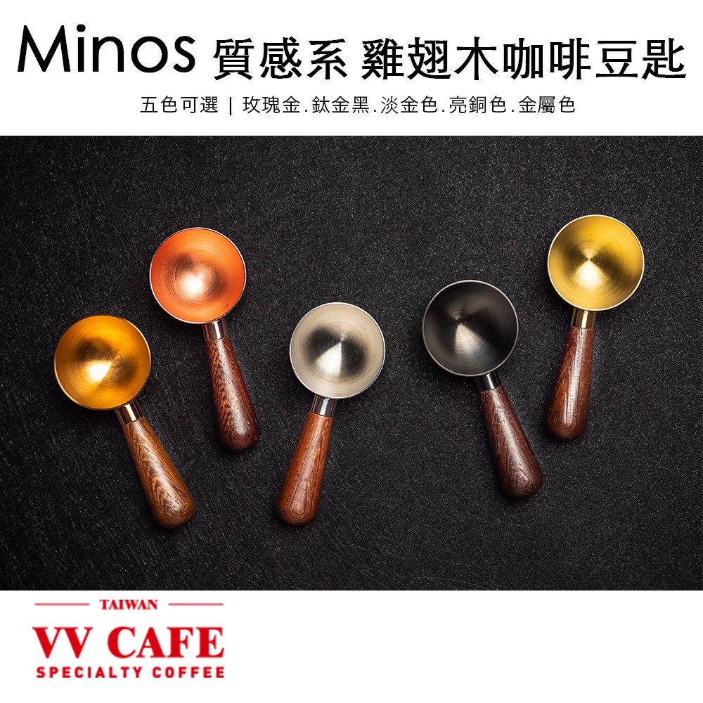 Minos質感系 雞翅木咖啡豆匙.豆勺 玫瑰金.鈦金黑.淡金色.亮銅色.金屬色-五色可選《vvcafe》