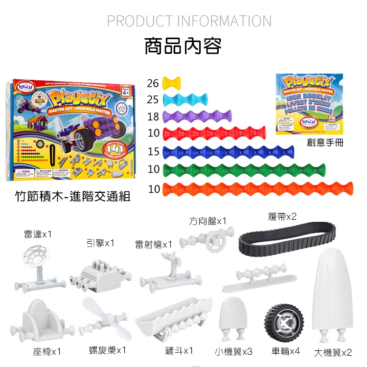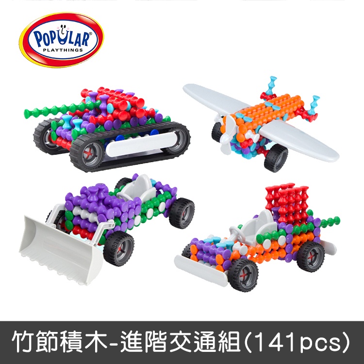 【美國Popular Playthings派派樂益智玩具】竹節積木-進階交通組(144pcs) 正版官方直營