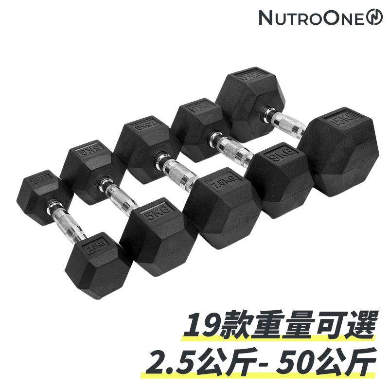 【NutroOne】實心包膠六角啞鈴(15KG-50KG,多種重量可選,一對2入販售)