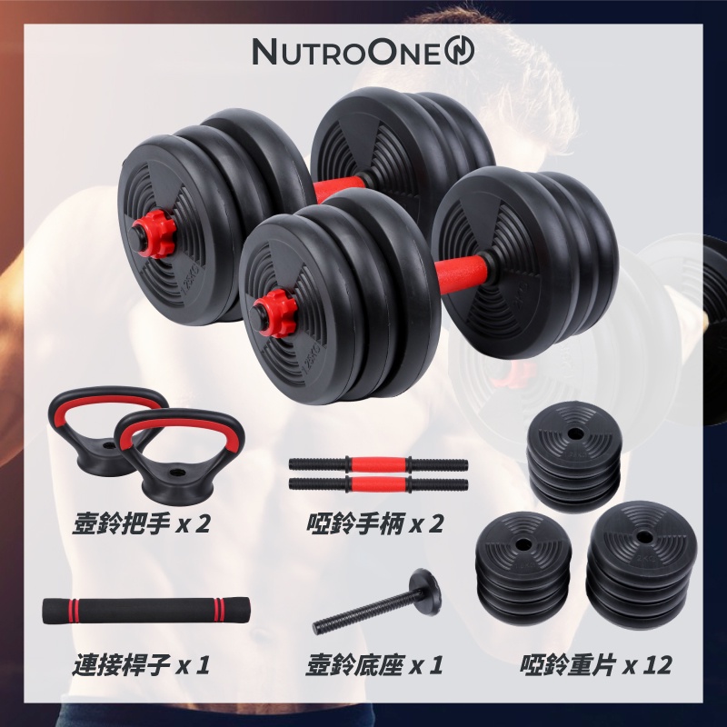 NutroOne】升級版四合一可調啞鈴/槓鈴/壺鈴套組 - 20公斤
