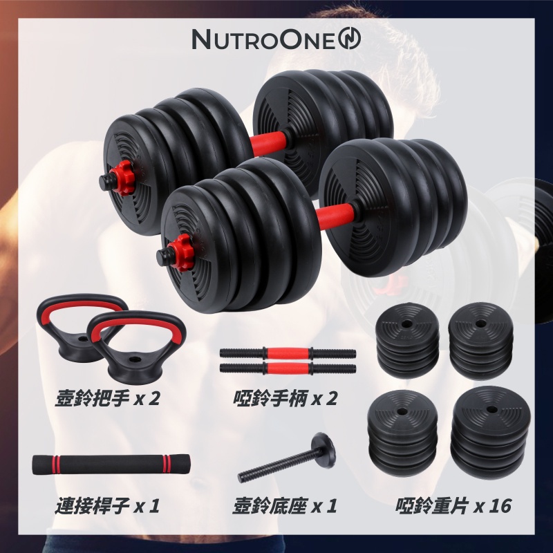 【NutroOne】升級版四合一可調啞鈴/槓鈴/壺鈴套組 - 30公斤
