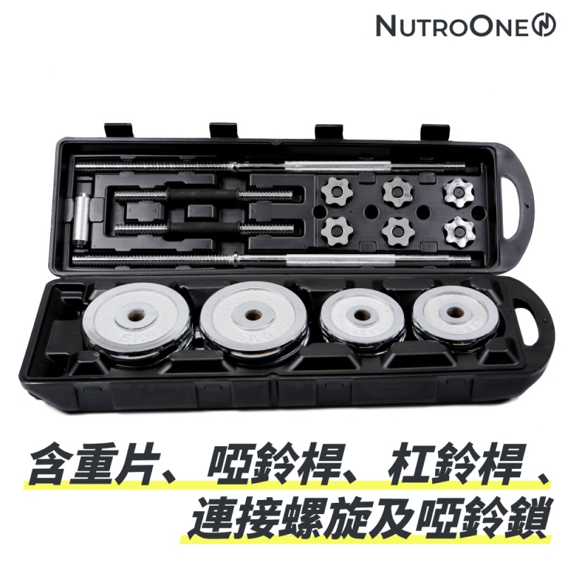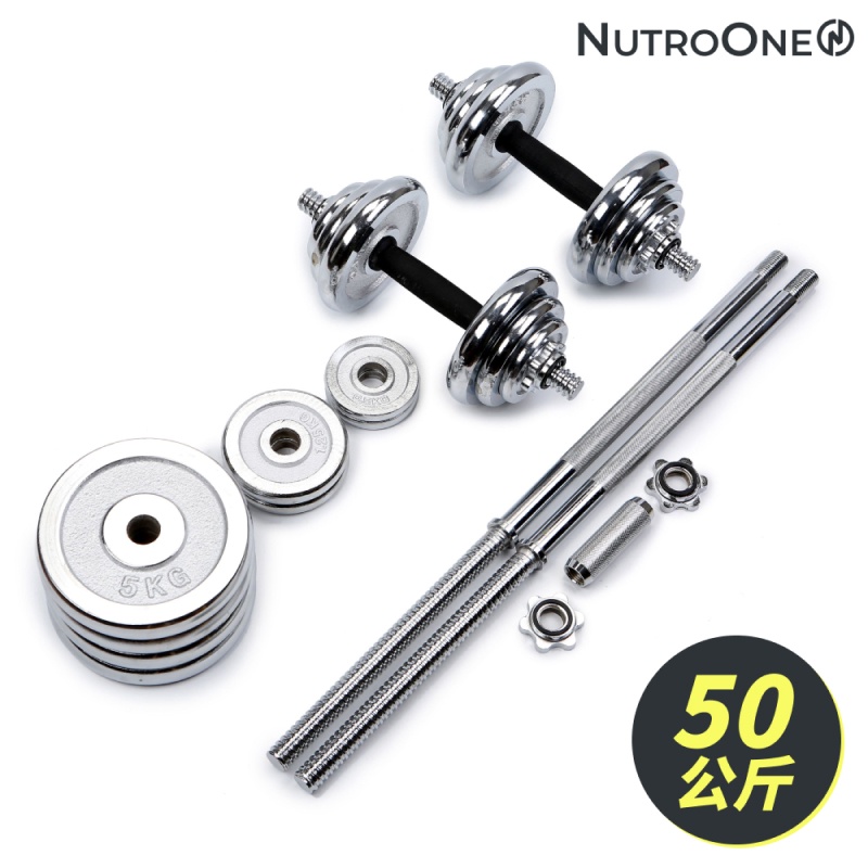 【NutroOne】50公斤 高級電鍍鋼製二合一可調啞鈴/ 桿鈴(高重量組合)