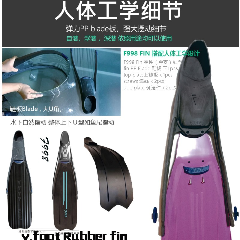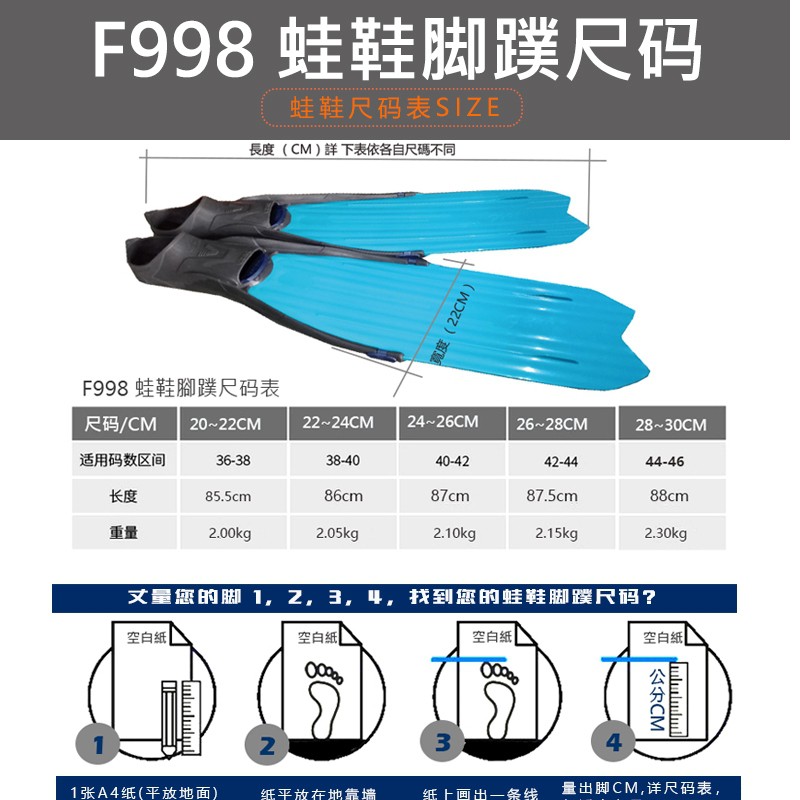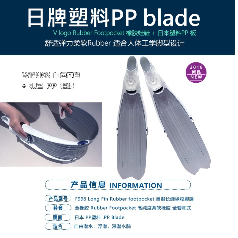 【V.DIVE威帶夫】台灣製專業自由潛水長蛙 WF998 (WF998全白腳套款/F998ICE透明蛙鞋下單區)
