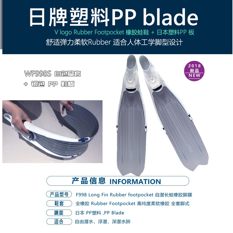 【V.DIVE威帶夫】優惠方案專區-台灣製專業自由潛水長蛙 WF998 (WF998全白腳套款 F998ICE透明蛙鞋)