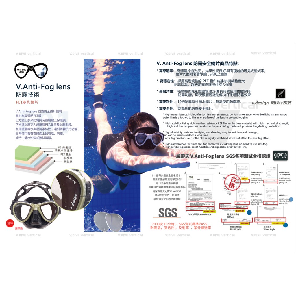 【V.DIVE威帶夫】防霧強化鏡片 免防霧劑 (2片1組) 適用F01自由潛水面鏡 Anti-fog lens(F01)