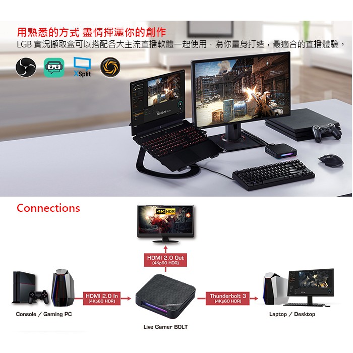 圓剛 GC555 LGB Thunderbolt3實況擷取盒 4Kp60 HDR影像擷取【圓剛官方】