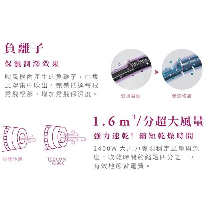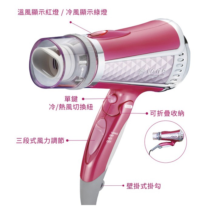 TESCOM 大風量負離子吹風機 折疊式 TID960 白色 / 粉色