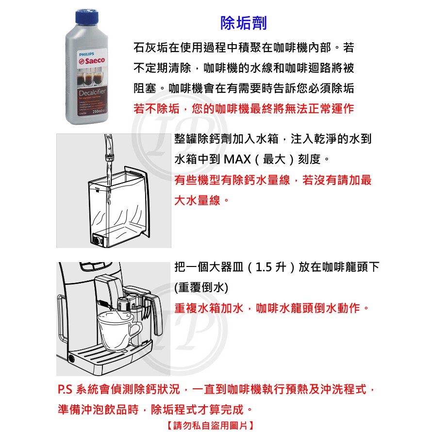 PHILIPS 飛利浦 Saeco 咖啡機專用除鈣劑 CA6700 (250ml) 【保養清潔組】