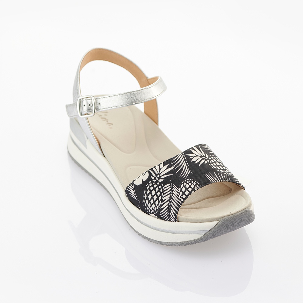 【Kimo】樹葉紋羊皮繫帶涼鞋 女鞋(黑 KBASF153073)