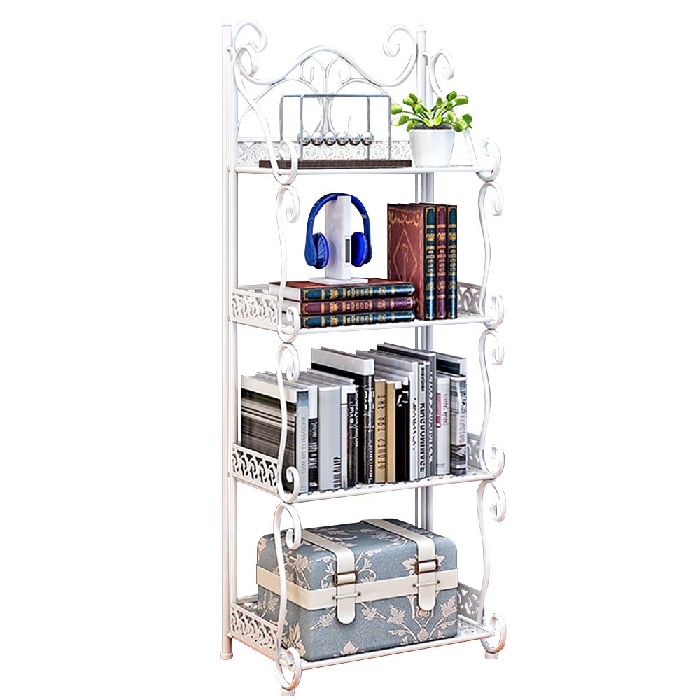鐵藝摺疊四層萬用架/收納架/花架/多肉植物架/盆栽價/書架白色(F0033-4W)