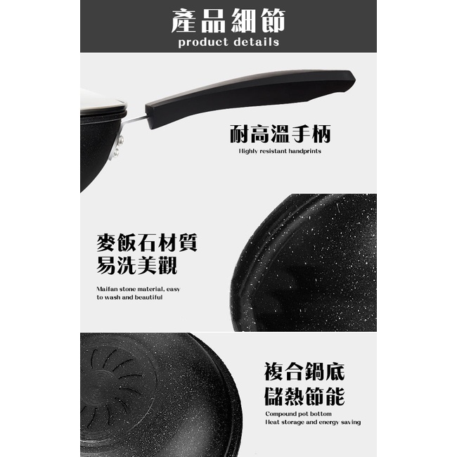 麥飯石三層複合聚能真空微壓炒鍋32公分