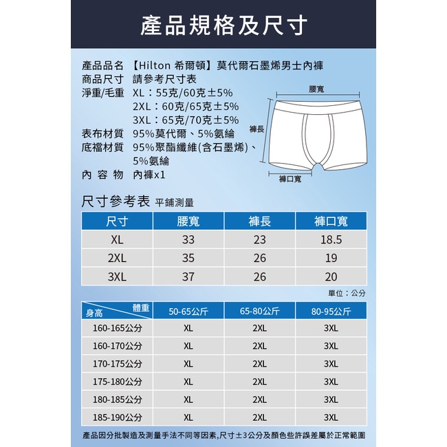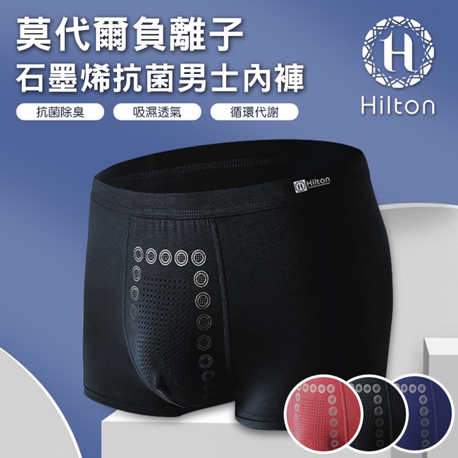 【Hilton 希爾頓】莫代爾石墨烯士內褲(Q0011)/吸濕排汗/四角褲/三種顏色尺寸
