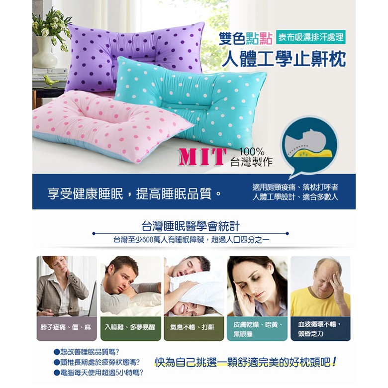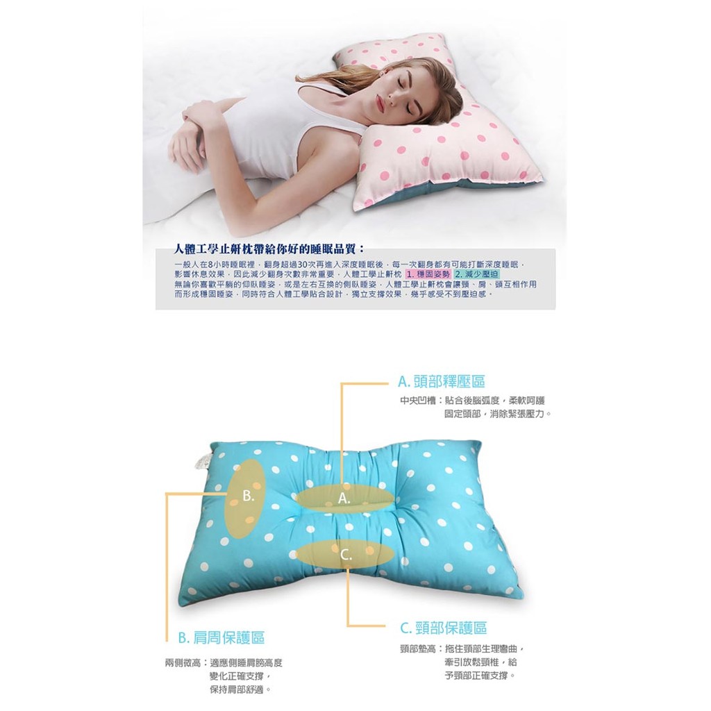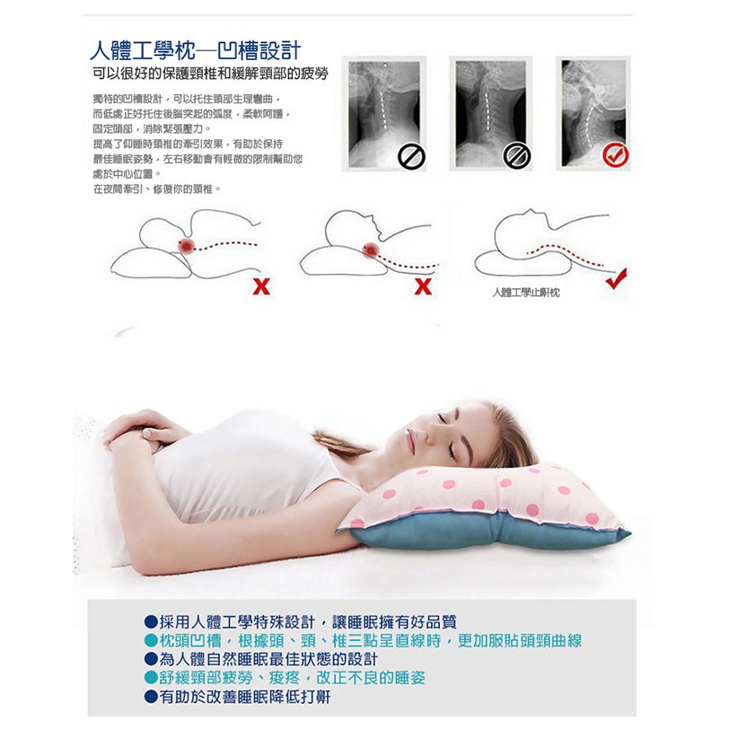 CERES席瑞絲吸濕排汗雙色點點人體工學止鼾枕三色任選(B0586)