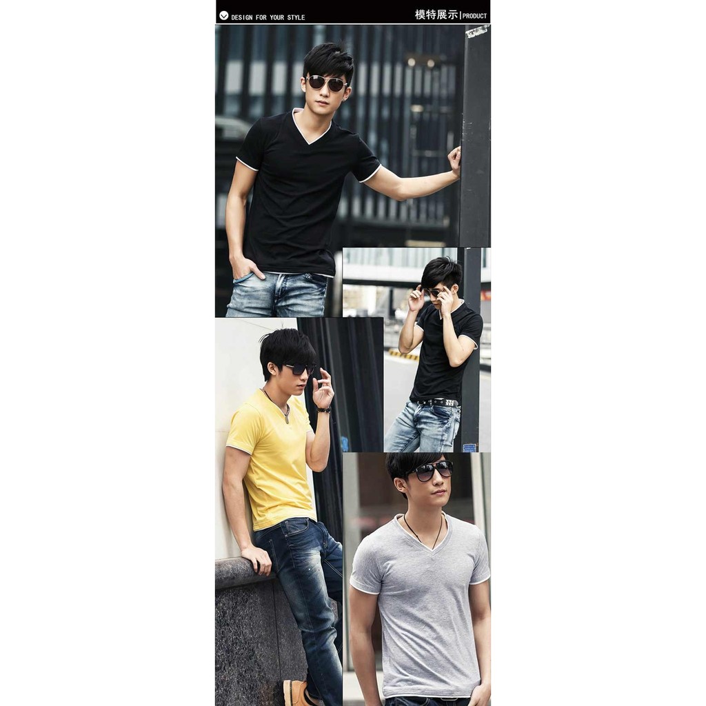 賠售【ENNE】百搭純色假兩件短袖修身男士V領上衣T恤/四色(Q1091)