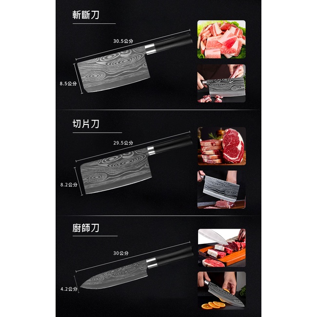 專業廚師愛用德國大馬士革鋼紋菜刀六件組/砍骨刀/切片刀