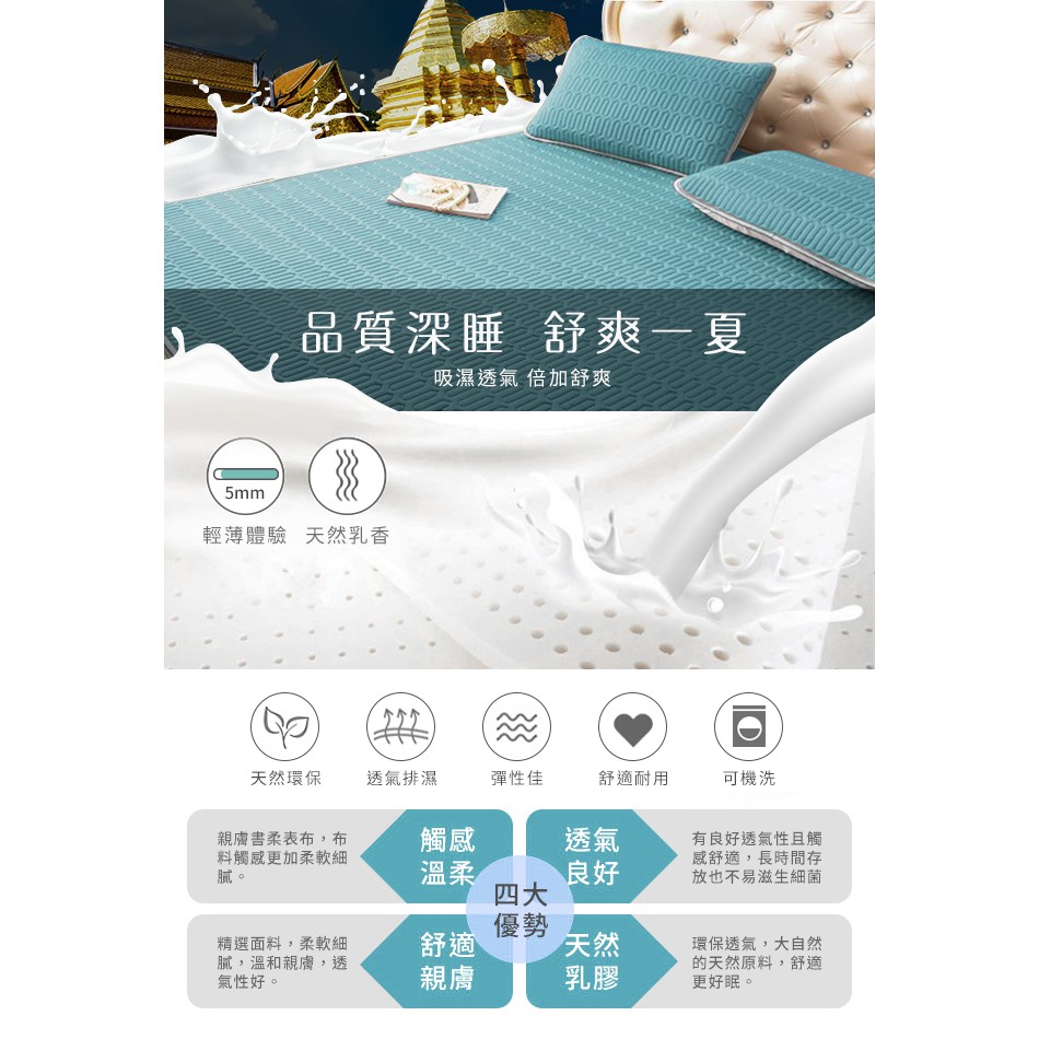 Hilton希爾頓 天然乳膠 防螨涼墊 冰絲乳膠涼蓆 雙人3件套 雲朵藍(B0096-AM)