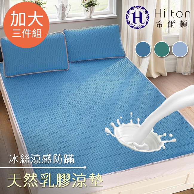 Hilton希爾頓 冰絲涼感 天然乳膠防螨涼墊加大3件套 藍寶石(B0096-CL)