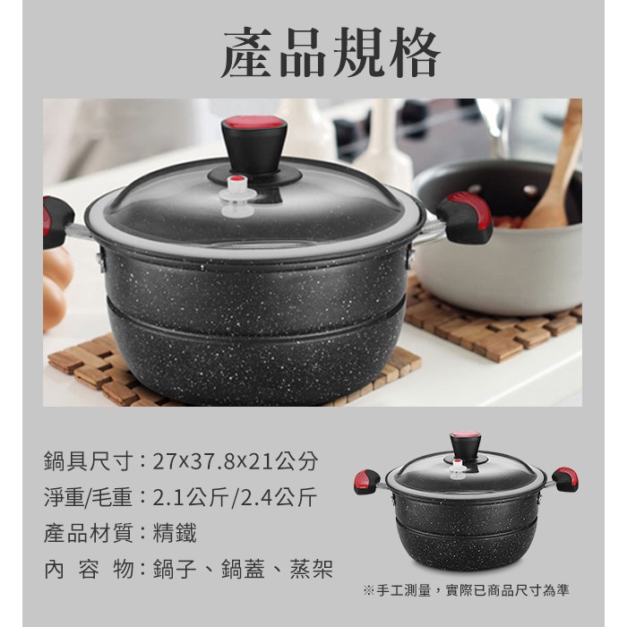 韓式二合一麥飯石真空微壓龍捲風聚熱環湯鍋/雙耳鍋/燉鍋/節能鍋(26公分)