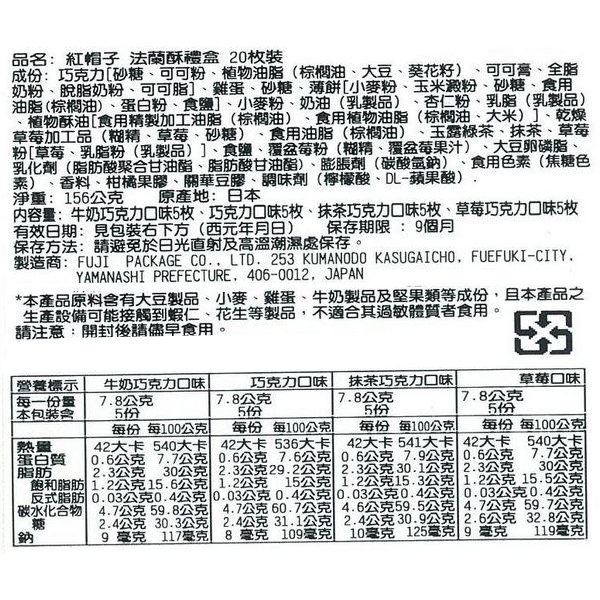 【紅帽子】日本禮盒 紅帽子 KUKKIA 綜合法蘭酥禮盒 奶油蛋捲 送禮首選 餅乾 法蘭酥 送禮 伴手禮 日本必買