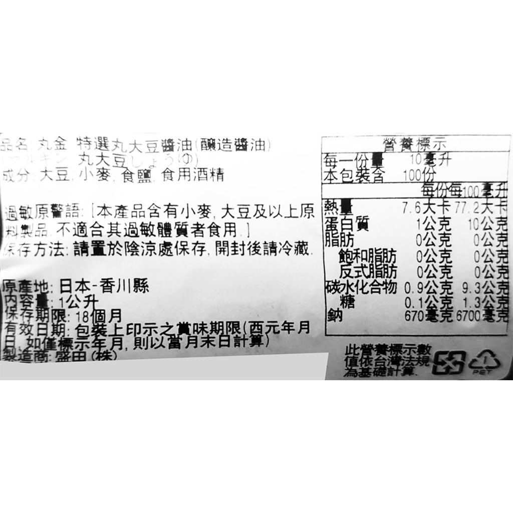 【丸金】日本廚房 丸金 特選丸大豆醬油(1L)[即期下殺$89]
