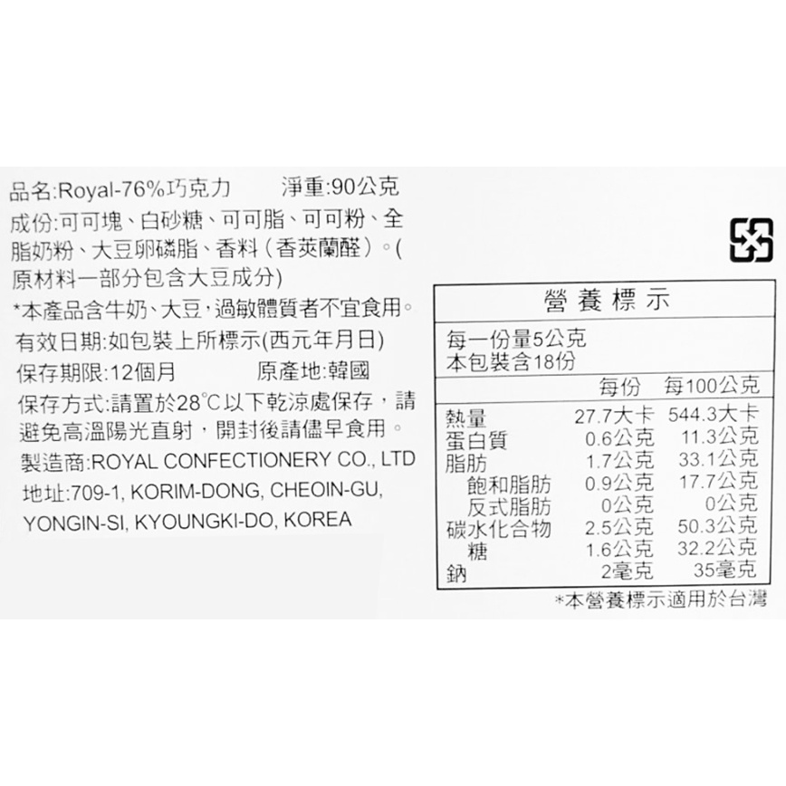 【Royal】韓國零食 Royal皇家黑巧克力 58% 76% 鐵盒 18入 巧克力 黑巧克力 純巧克力 皇家