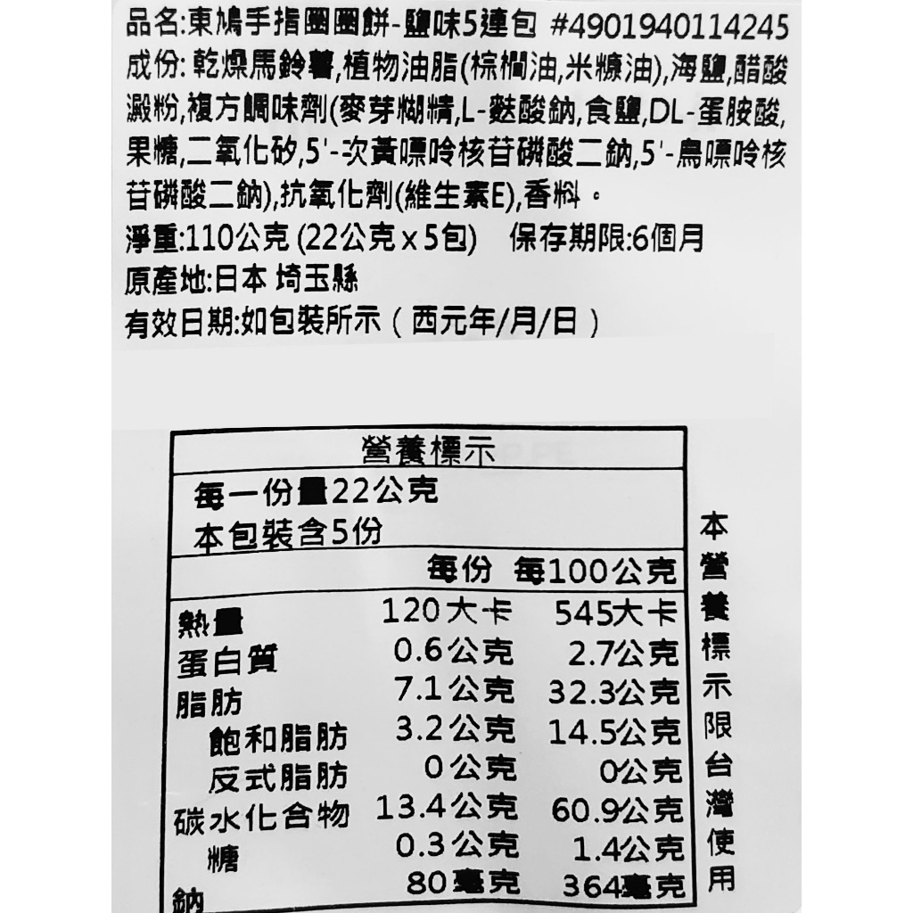 【東鳩 TOHATO】日本零食 東鳩 手指洋芋圈圈 袋裝 5包入 圈圈餅 洋芋圈 分享包 手指 手指圈圈餅 餅乾 聚會