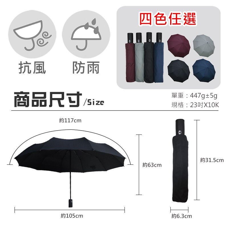【KASAN 雨傘媽媽】十骨強抗風自動開收傘(4色任選)/自動傘 抗風 大傘面