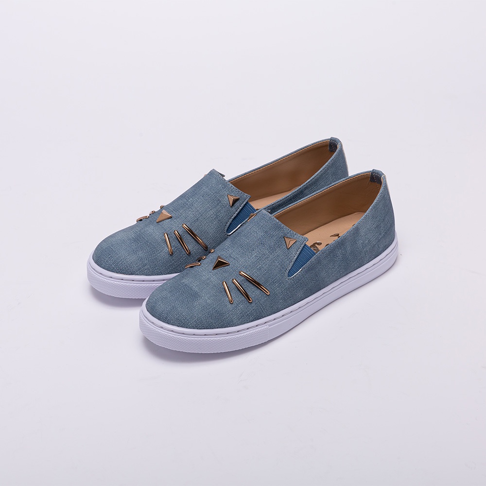 【Avivi】品牌經典金屬貓咪飾釦平底鞋-粉色 / 白色 / 藍色 / 黑色 / 灰色 (平底鞋 貓咪造型 女鞋)