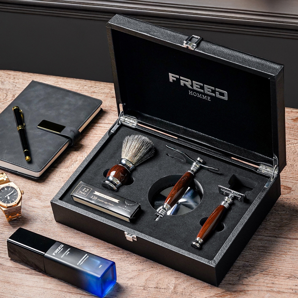 【FREED】雙刃式刮鬍刀豪華四件組禮盒 多色可選 客製化 刻字 送禮 生日 男生 男性 禮物推薦 聖誕節 交換禮物