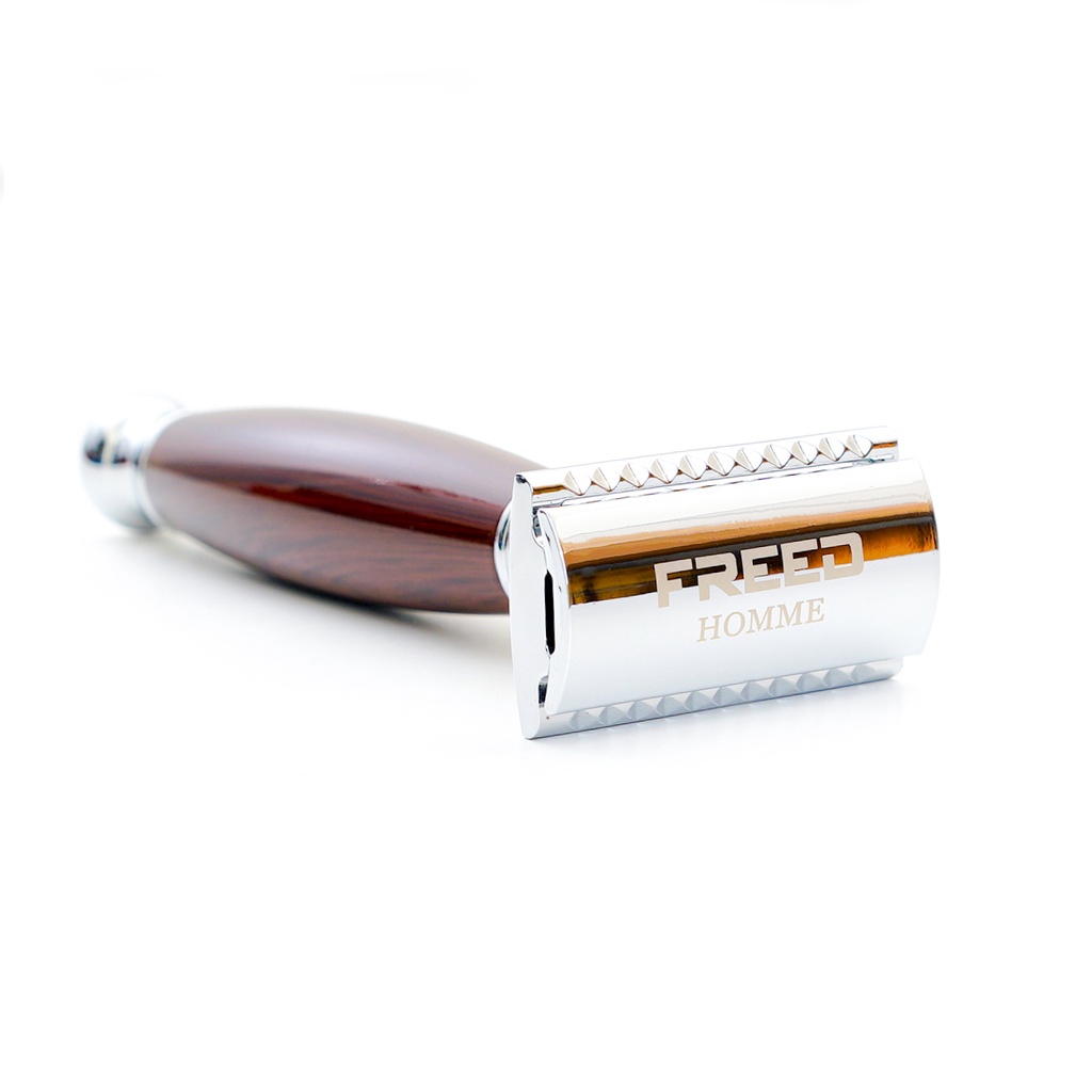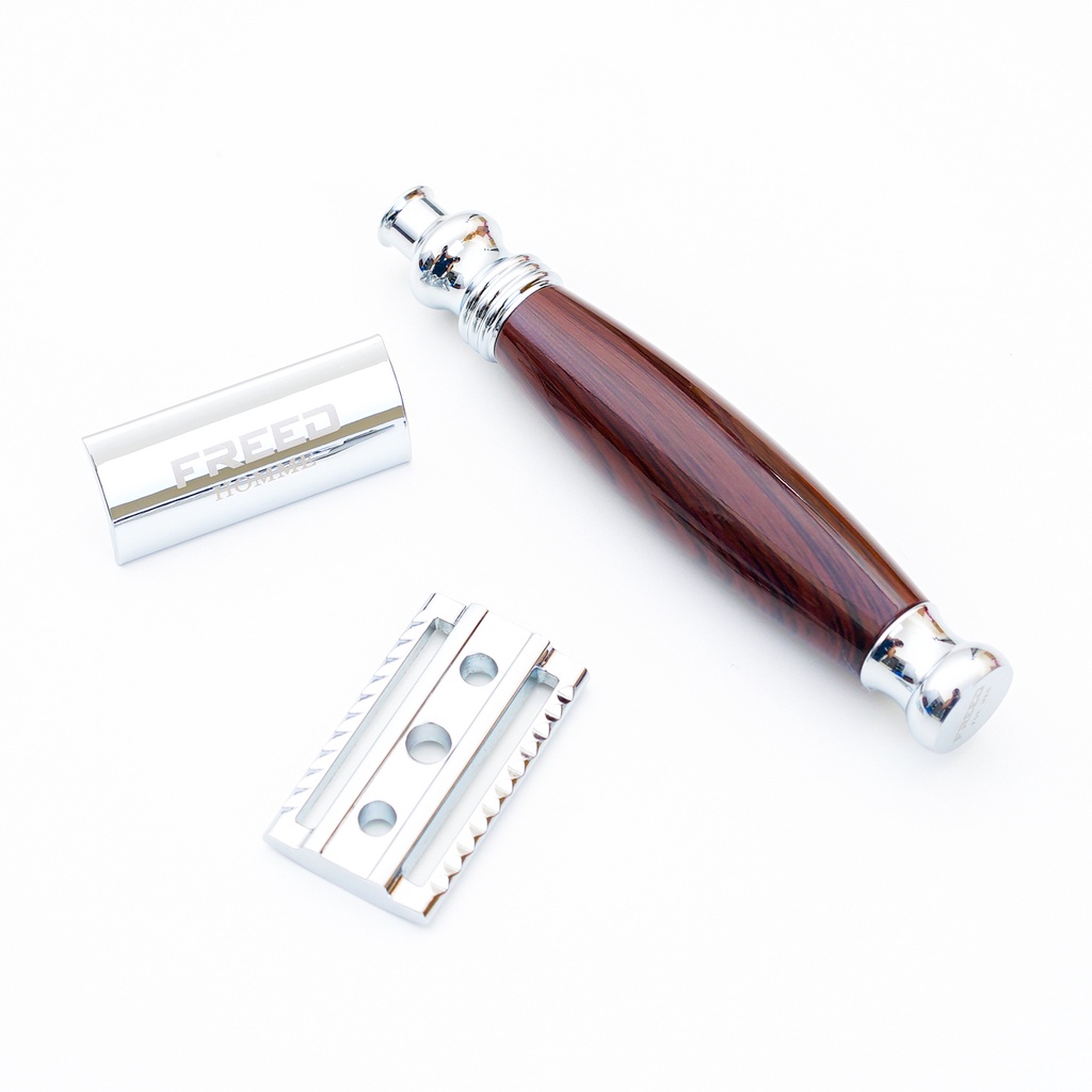 【FREED】封閉式復古雙刃安全刮鬍刀- 仿紫紅檀木 (附刀片10片) 現貨 生日禮物 男友禮物 客製化 聖誕節 交換禮